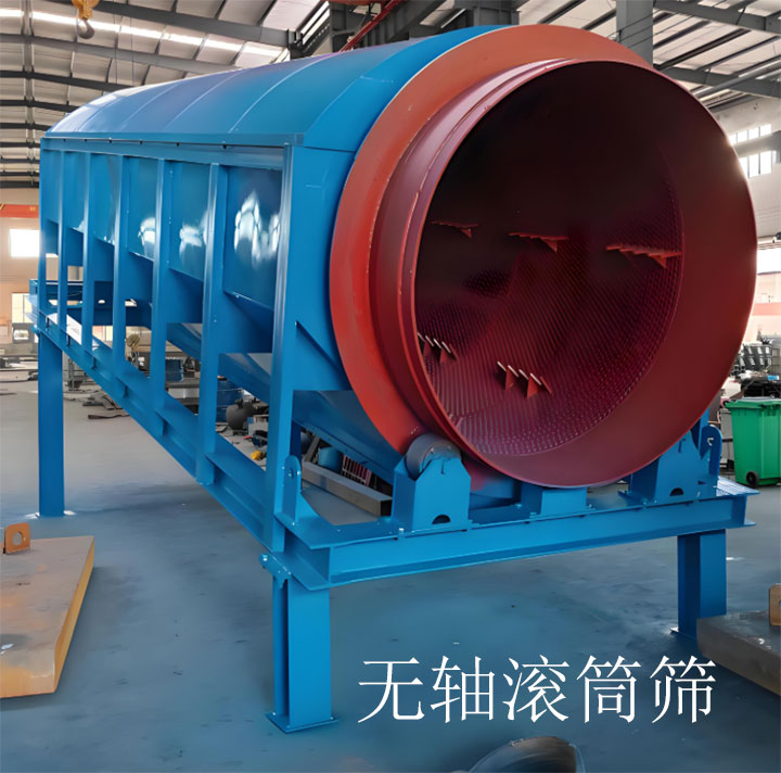 在生活垃圾處理場景中,因垃圾成分復雜,含有大量大塊雜物、塑料袋等易纏繞物料,無軸滾筒篩是更優選擇,其無中心軸設計可有效處理不規則物料,提升垃圾分選效率。