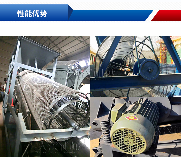 滾筒式篩沙機,即滾筒篩沙機,按照用戶產(chǎn)量的大小可以分為大型滾筒式篩沙機或小型滾筒式篩沙機,是分選技術(shù)中應(yīng)用非常廣泛的一種新型篩料設(shè)備。它克服了圓振動篩和直線篩在篩分較濕物料時出現(xiàn)的篩網(wǎng)堵塞問題,提高了篩分系統(tǒng)的產(chǎn)量和可靠性。