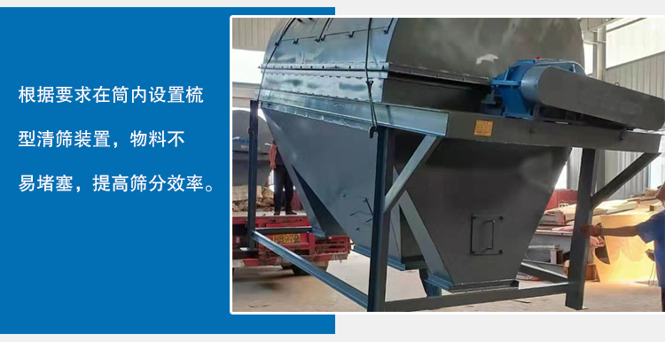 1、運用滾筒篩分原理,物料在篩分過程中不停地翻轉,可以減少物料堵塞。